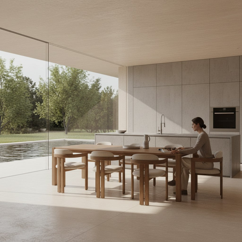 Pensée pour les repas qui s’étirent et les moments partagés, elle allie confort, stabilité et élégance discrète.